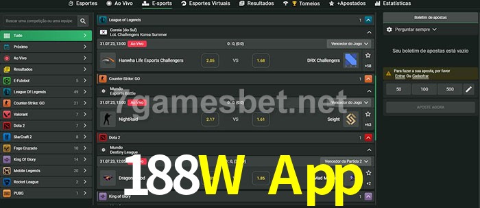 O 188W App oferece uma grande seleção de opções de apostas em e-sports com probabilidades competitivas